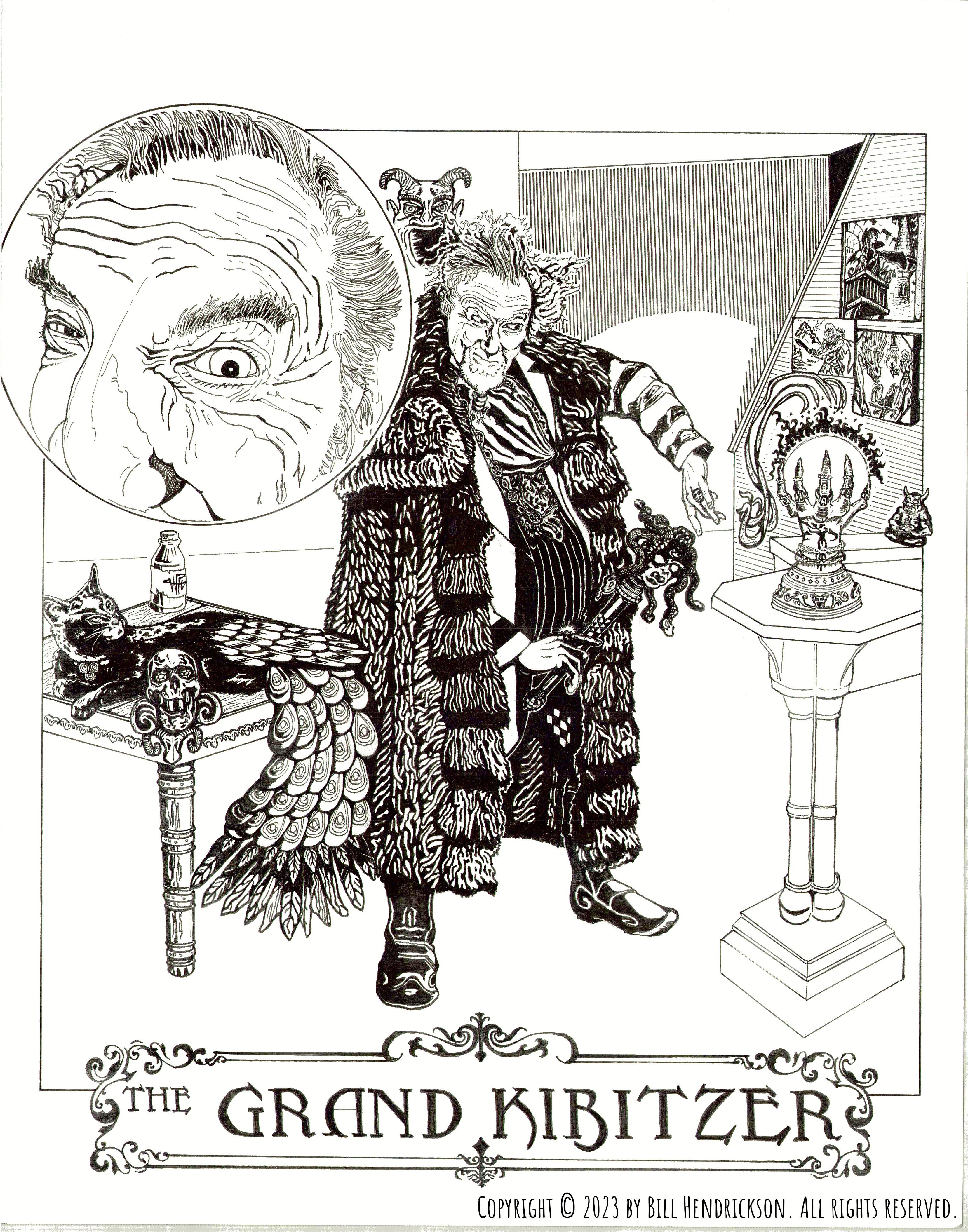 This is a commission I did in March of 2023. The Grand Kibitzer is an NPC court advisor with a wily way about him, and a penchant for the exotic.